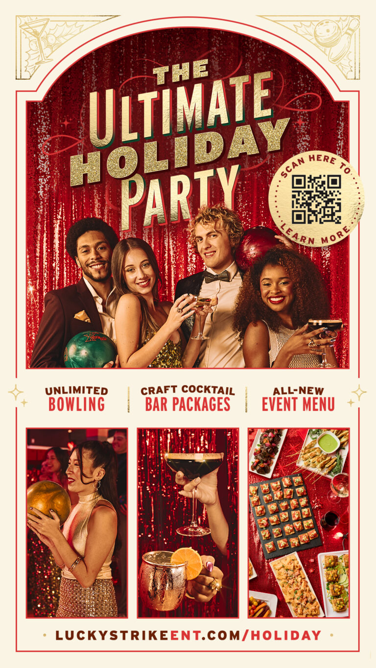 For Lucky Strike’s holiday campaign, I led the creative from concept through execution. From developing and refining the visual direction, directing the photo shoot, and designing a cohesive campaign across digital and in-venue touch points. The result: a festive, on-brand experience that drove seasonal engagement and sales.